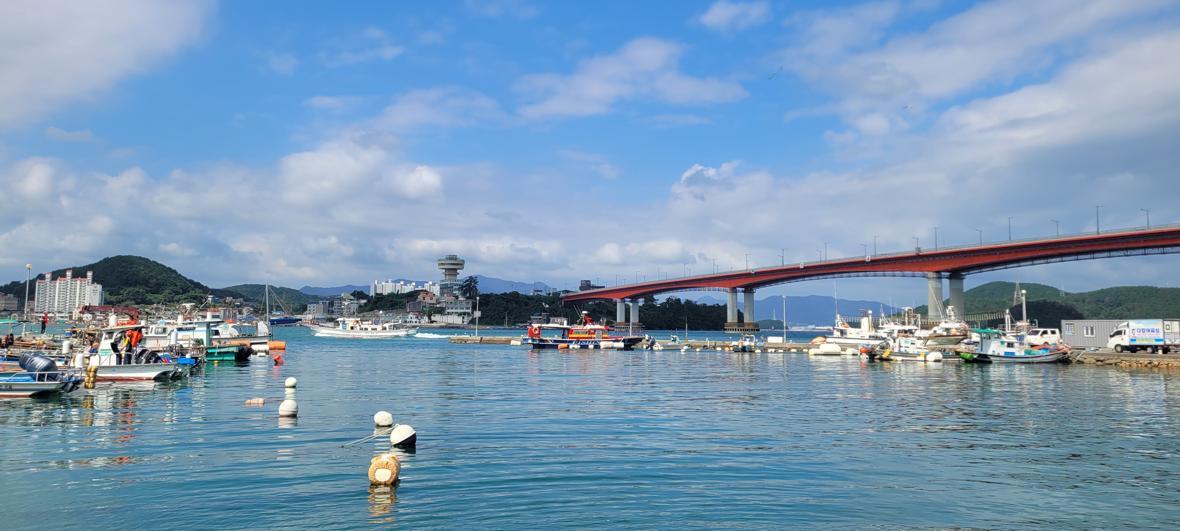 파도는 쉼표가 되어 다리 밑을 두드리고, 섬과 섬을 잇는 강철 문장이 반짝인다.