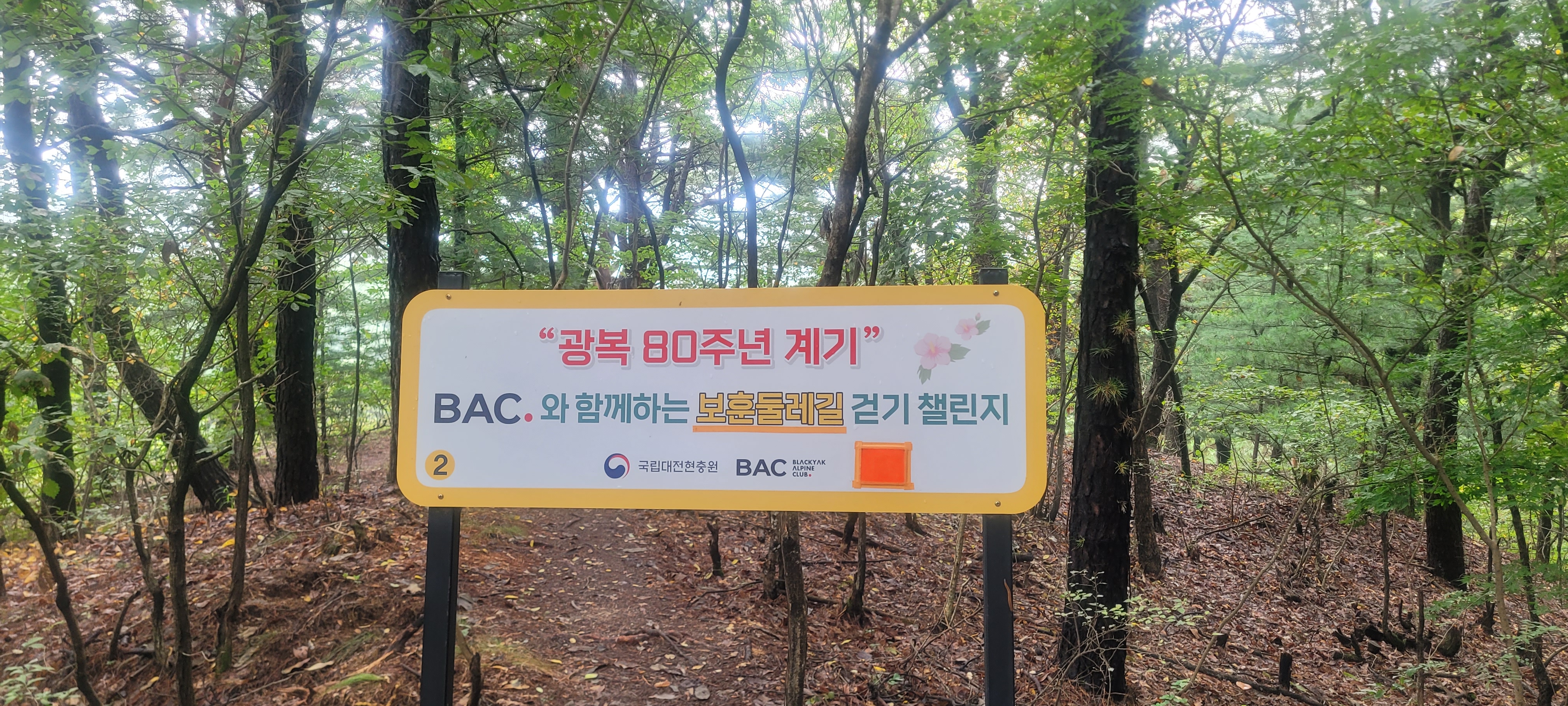 국립대전현충원이 블랙야크 알파인클럽(BAC) 과 함께 ‘보훈둘레길 걷기 챌린지’를 진행한다고 한다.