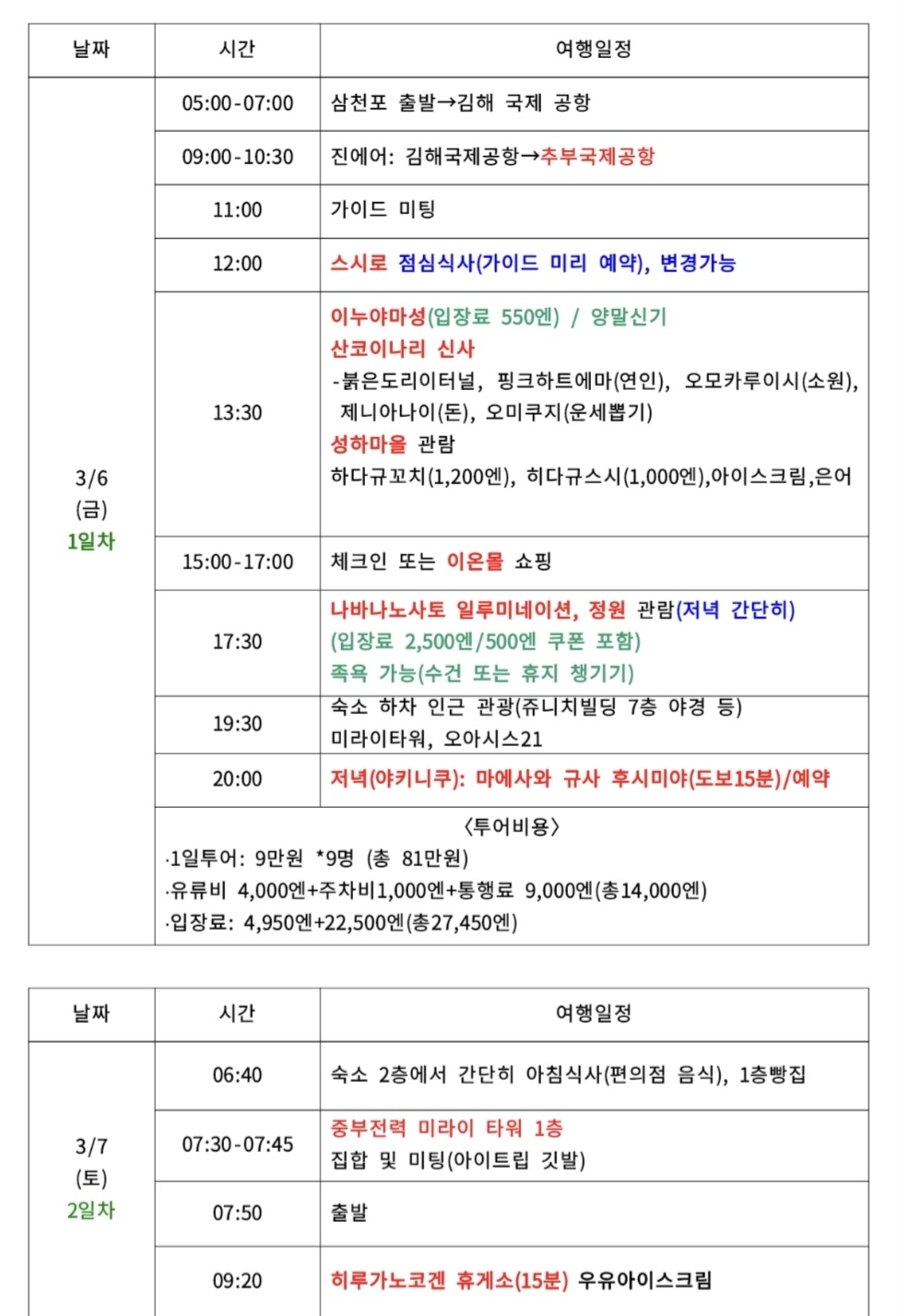 첫날은 이누야마성과 산코이나리 신사를 방문합니다.